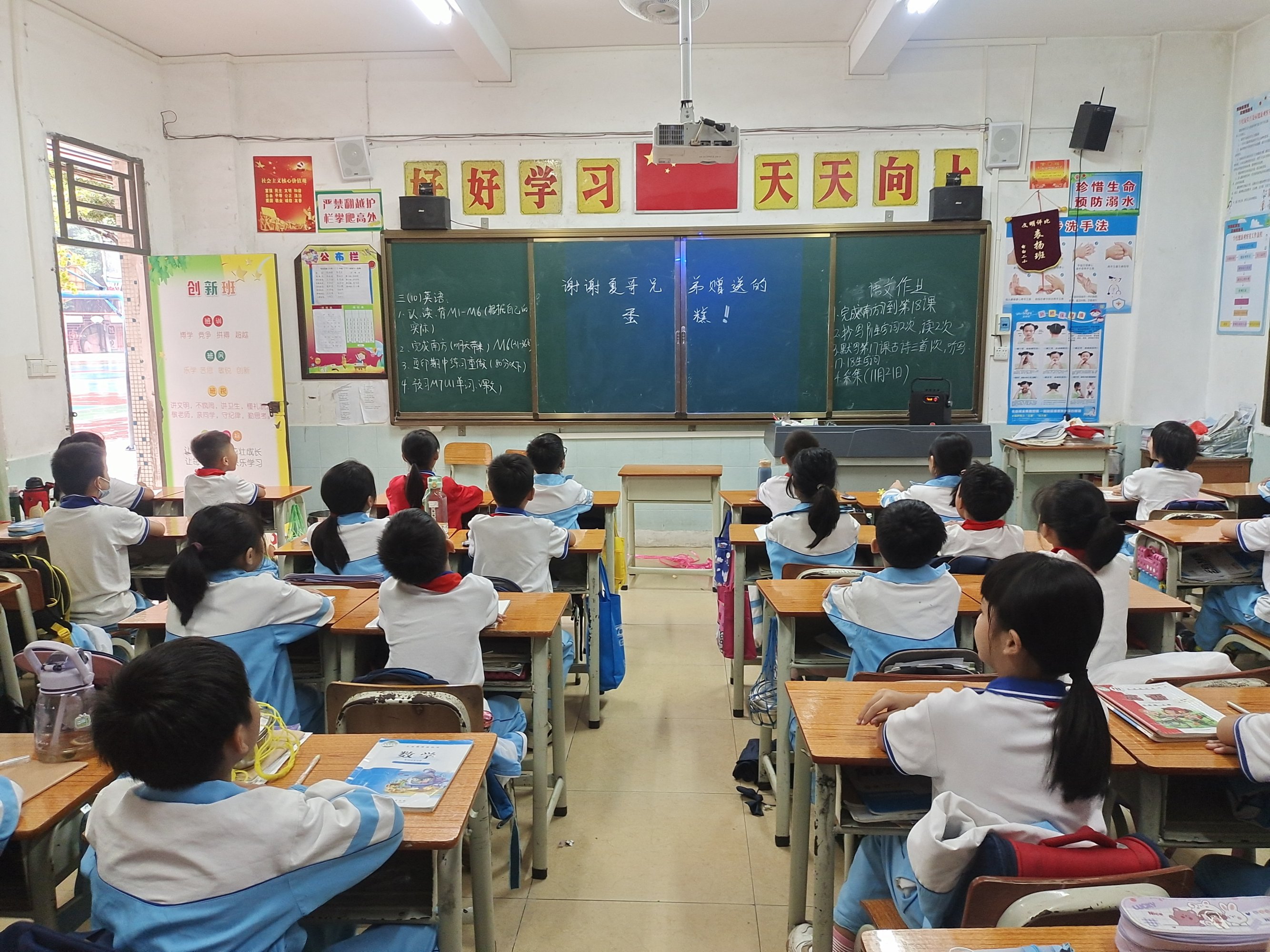 庆祝小朋友取得全区优异的成绩。