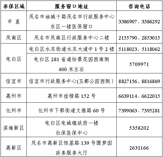 茂名市各级医保经办窗口地址及咨询电话.png