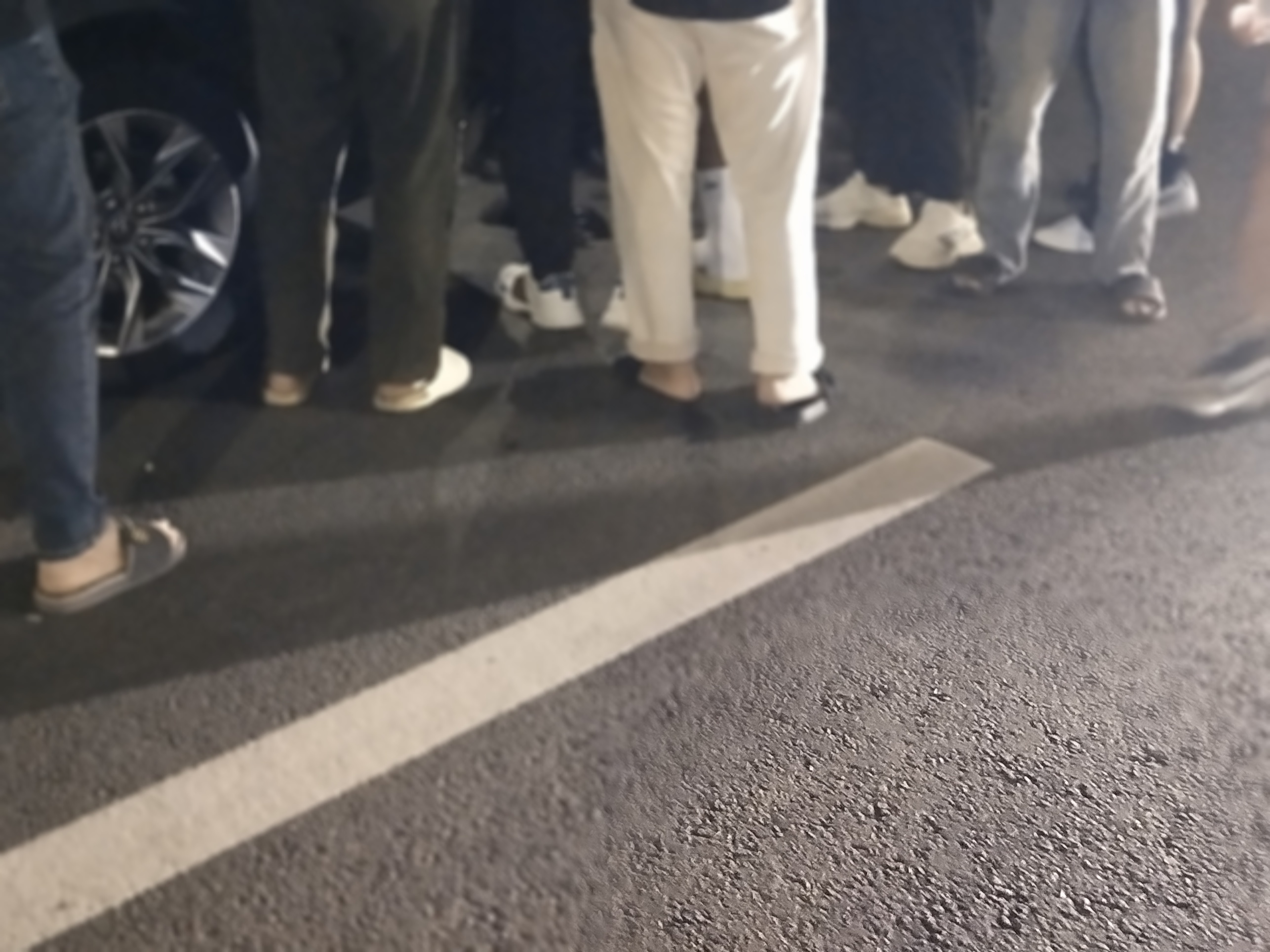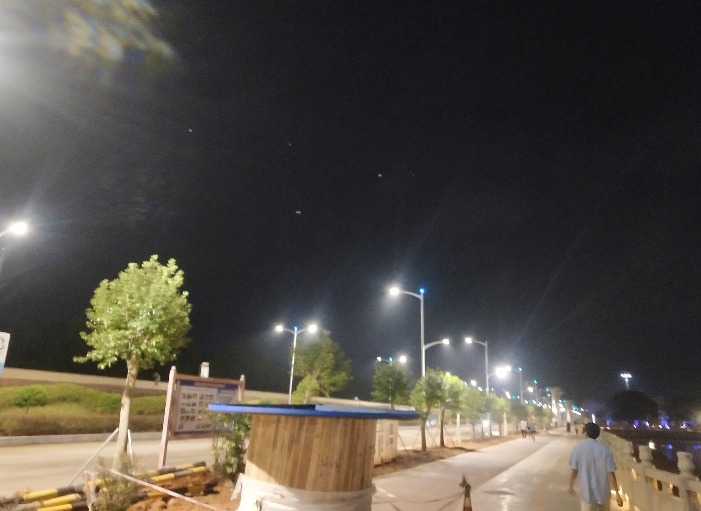 来几张前些晚上较晚时间,站在还封闭还没清表的路中间的图...