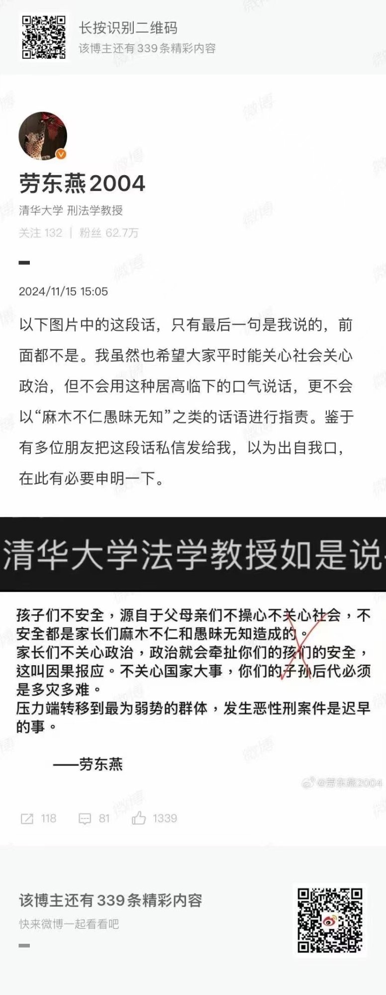 今早湖南常德小学又一单,短视频时代下,社会问题会被暴露的更彻底,贫富差距、公权力滥用、贪污腐败…都导致社会戾气的增加,以前可能只听说过有钱人,短视频下发现富人的生活原来是这样的,甚至一条狗过得都比人好…现在是由下而上倒逼社会改革,问题藏不住了。80.90这批单身汉才是定时炸弹,看不到希望,达到一定年龄随时引爆,性压抑,负债,排斥,有资源的花不完的钱,睡不完的女人,没资源的150还嫌贵还会拘留。贪几十亿,几百亿,几千亿只得个缓,擦边球赚一百几十万判个十几二十年,不用几年,公安机关就会对负债达到一定程度的人,判刑出来失业的人进行重点监控以防万一。