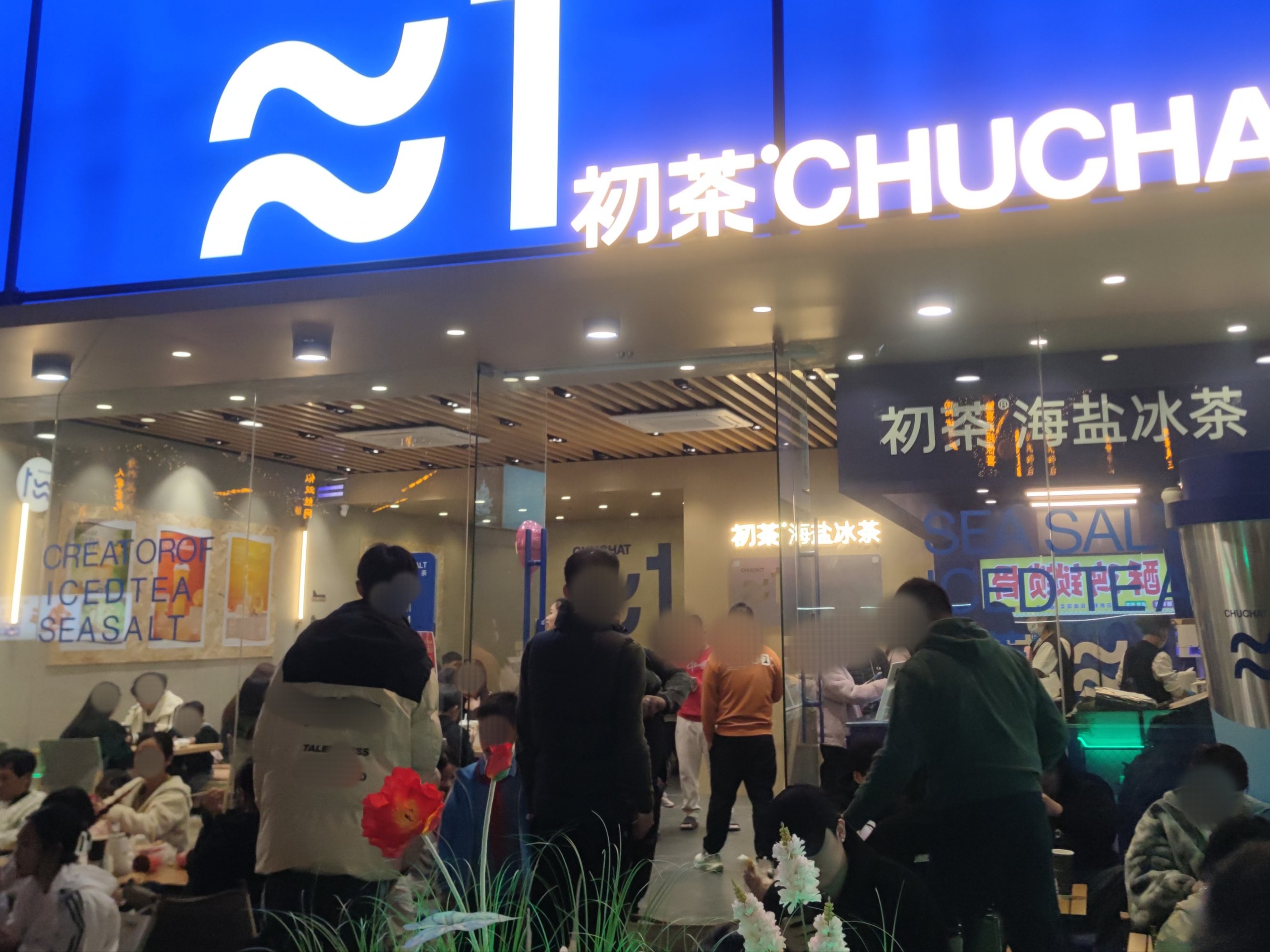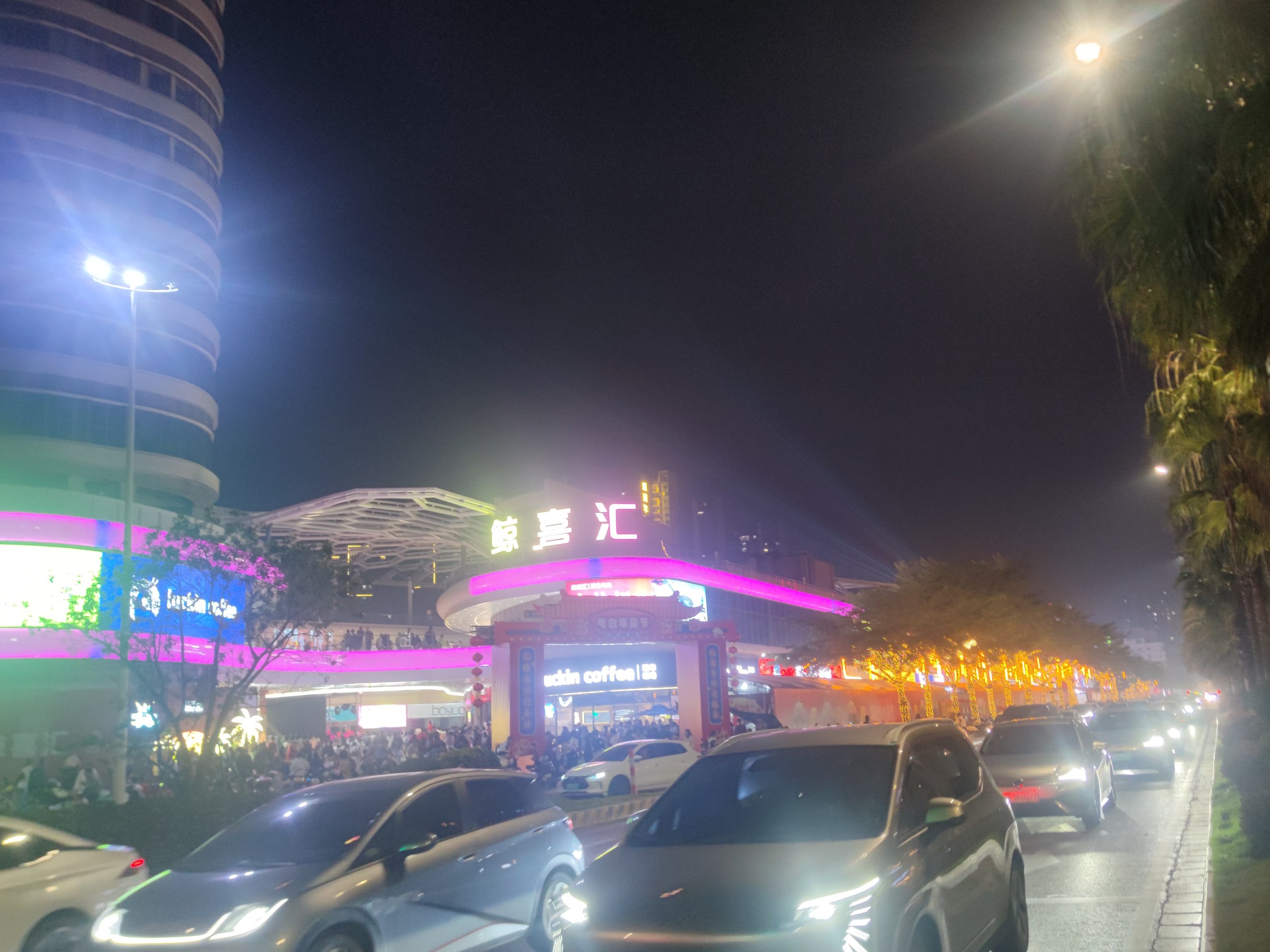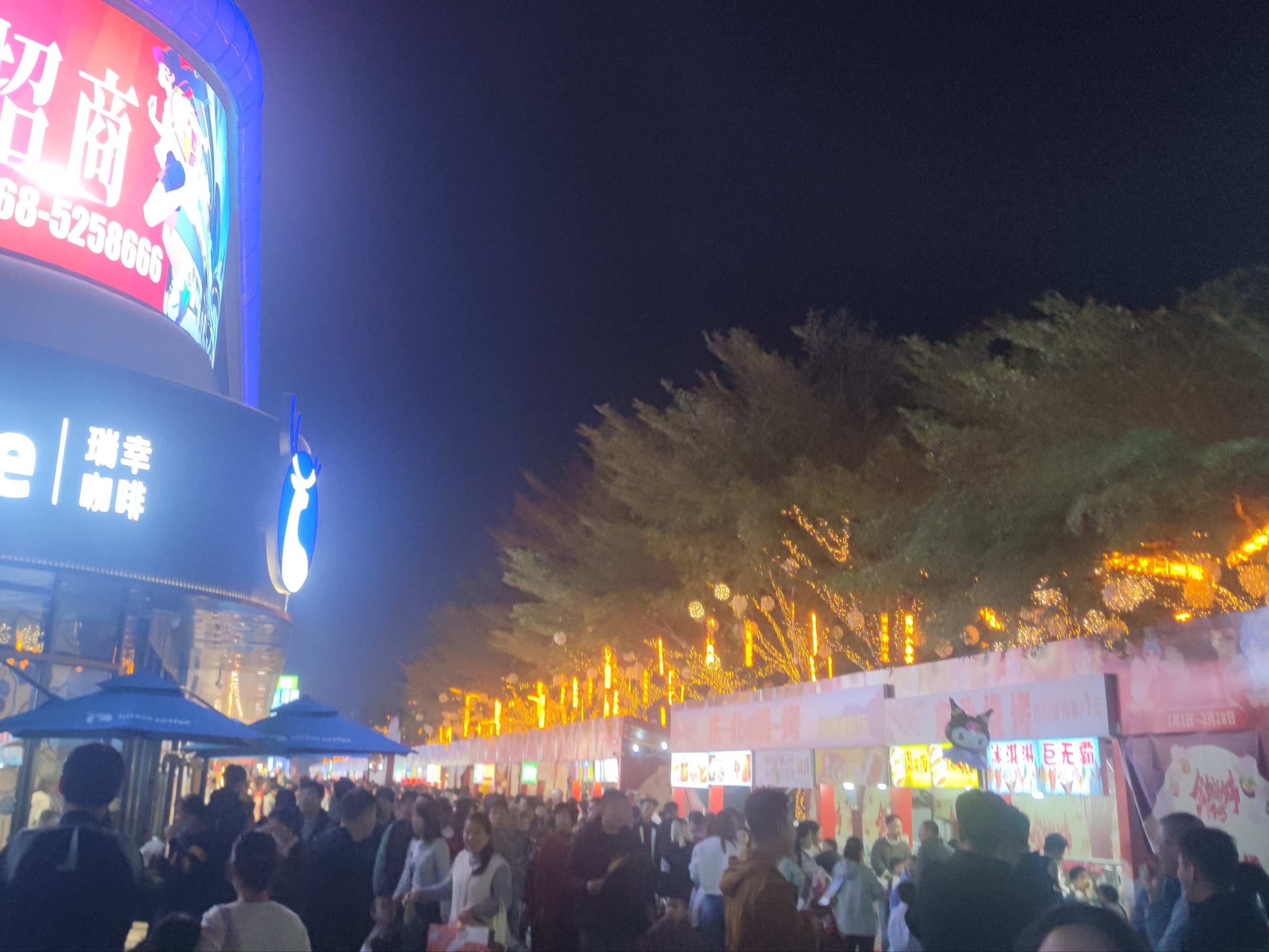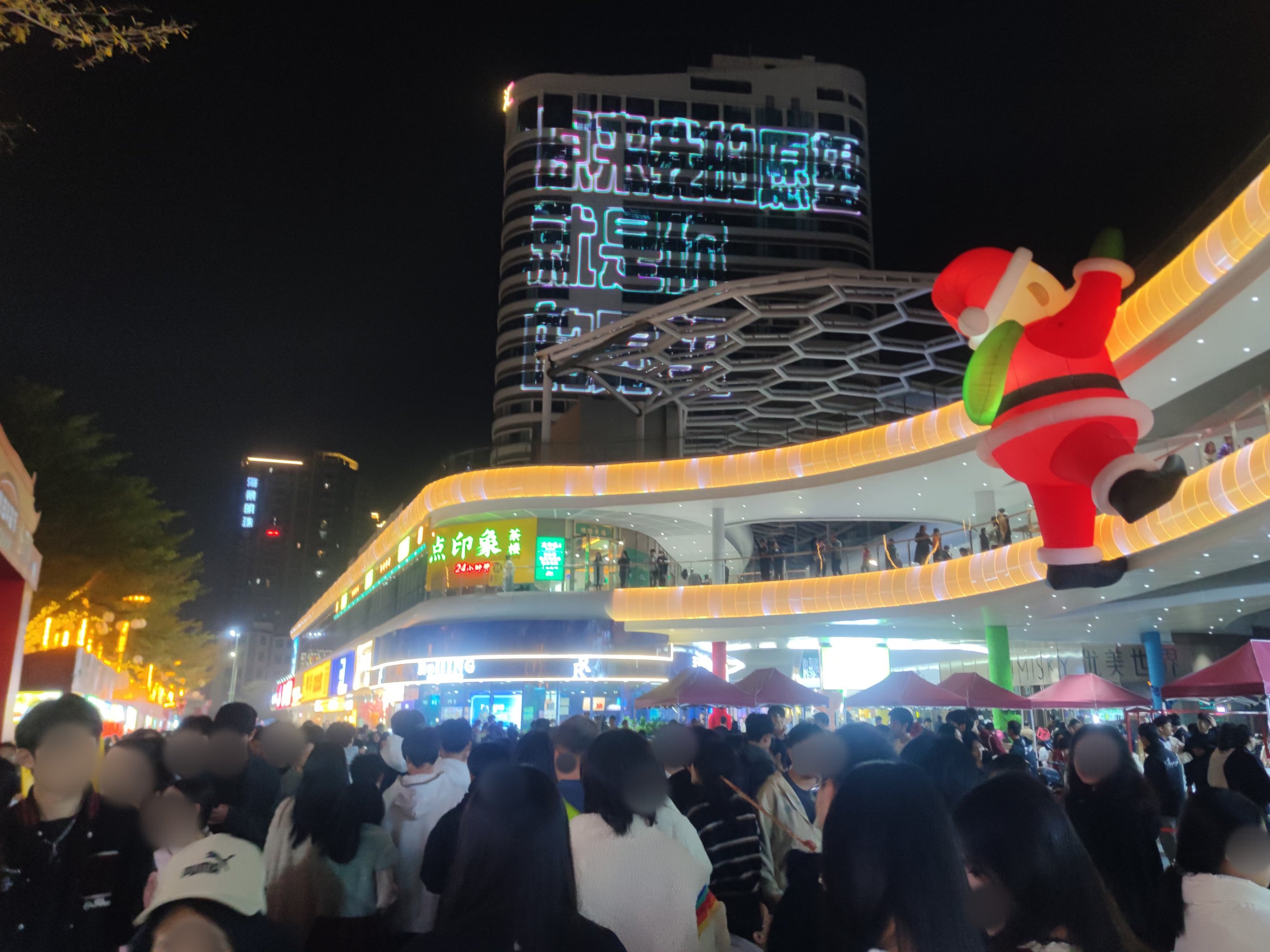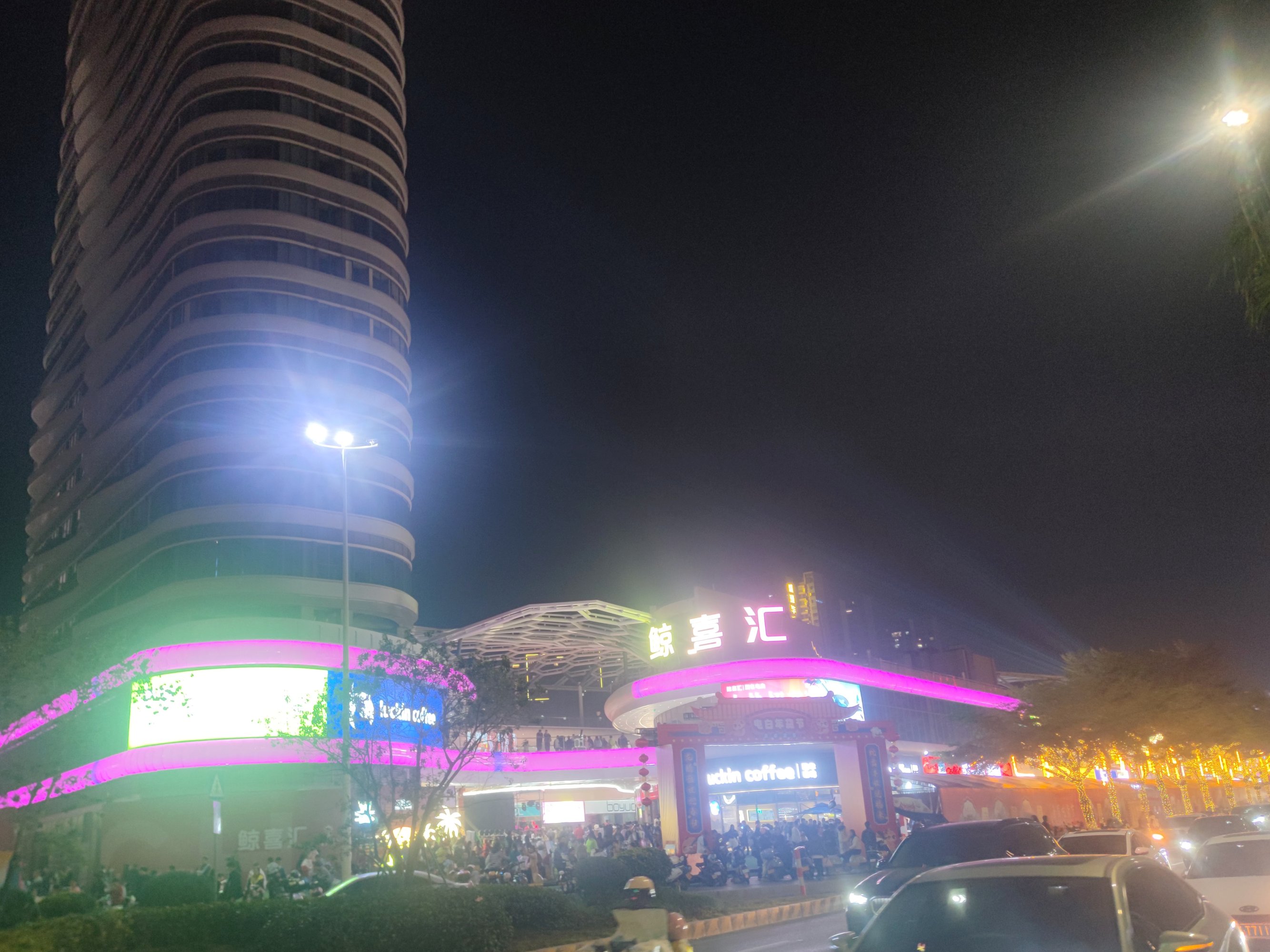 而靠近水东大道这边的广场,人流相对少点,有可能是时间较晚点了或有好多人拥去看表演还是去点印象喝茶还是其它~?