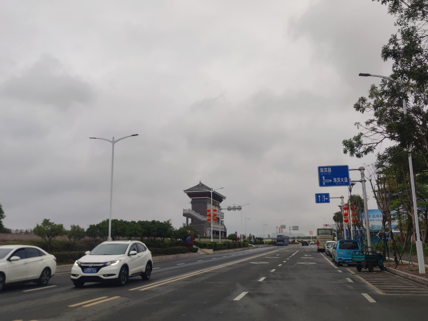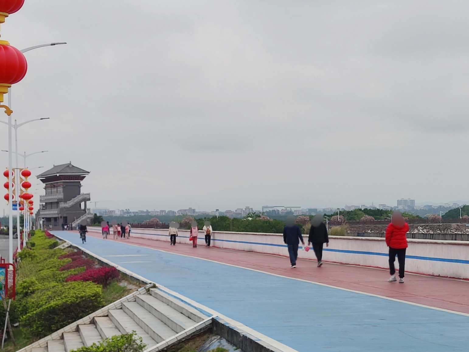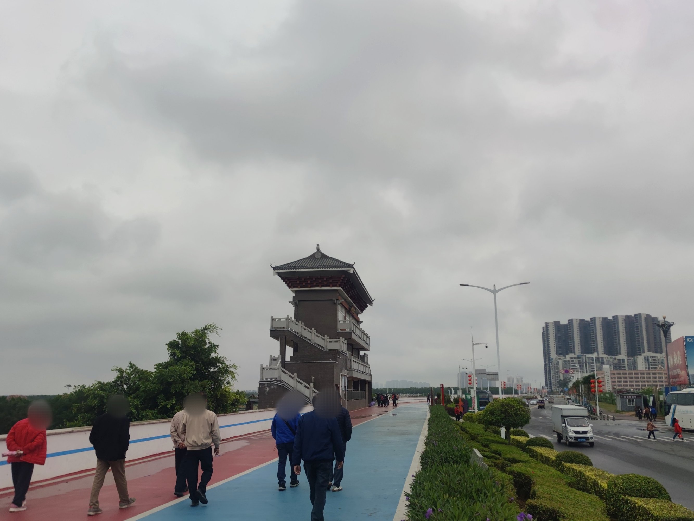 海堤路上感觉车来车往,汽车像从好多个路囗进进出出?游巴自驾车等等的,好像走了又来?而步行绿道上也好像进进出出~今天天气不作美,但希望他她们能有个好心情~!