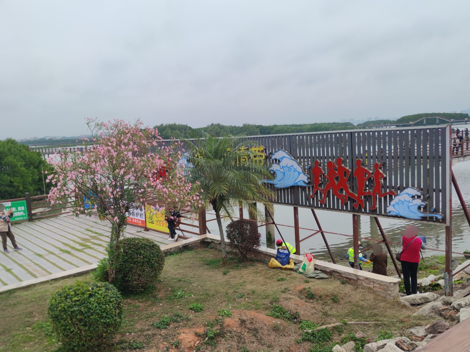 也进入下栈道入口,见有些亲爱的游人在托些清洁工帮捡些海上漂浮的海藻?