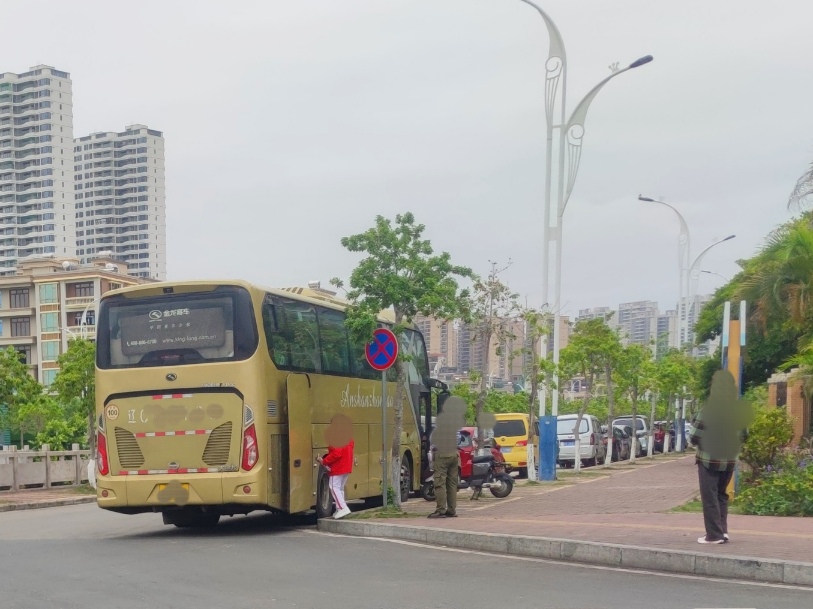 今早天气还是有点冷,幸亏没下雨,早早就见有粤A游巴的到来~
