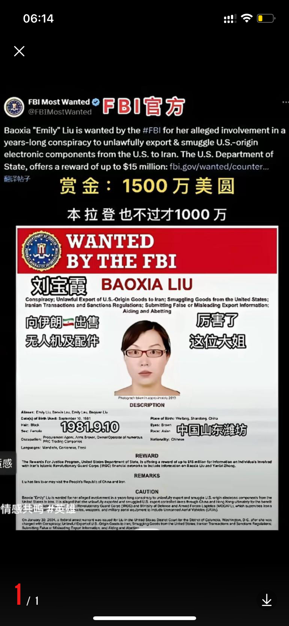 cz752 大学三年级 注册 2019-12-20 消息 802 反馈评分 94 点数 11 2025-09-13 iOS Mobile Safari 18.6 #95 美国悬赏 1500 万美元缉拿王少云… 附件 IMG_7548.jpeg 773.2 KB · 查看: 306