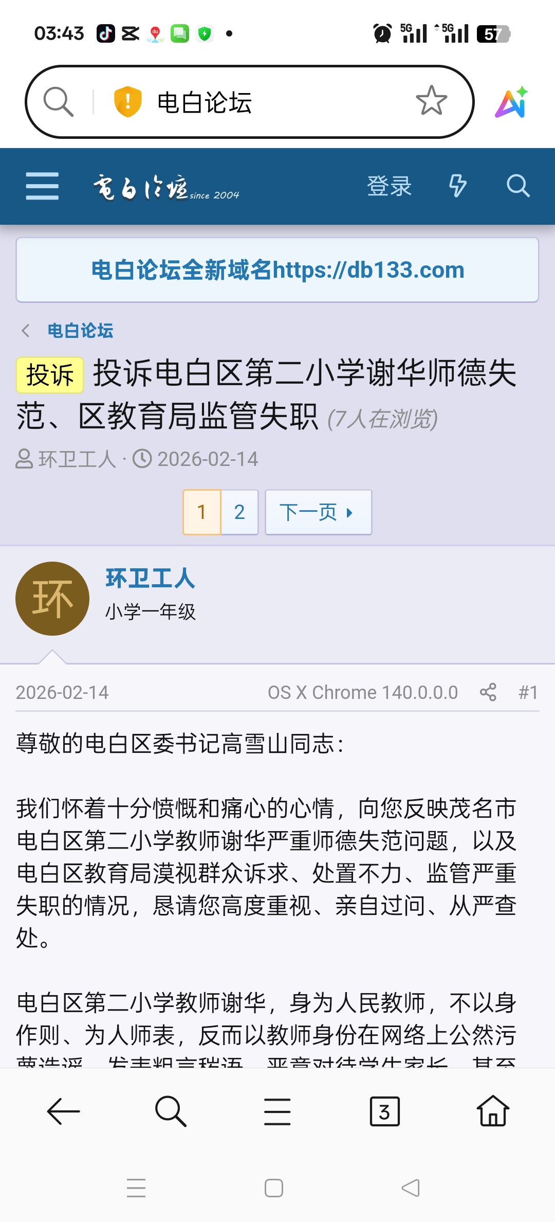 不能这样说,他敢在论坛实名讲话,而且教育局还抓不了他的把柄,要是有把柄他早听话了,说明人家确实有点实力