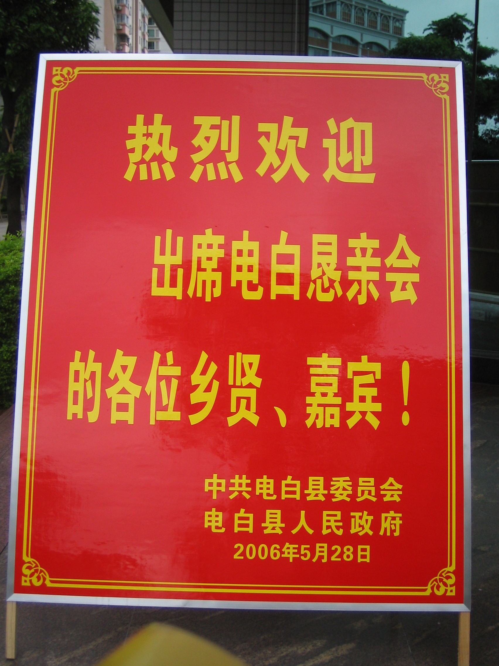2006年5月28日, 电白县委县政府在广州举行召开<全球电白恳亲大会> 届时请各界精英前来聚谊 这次恳亲大会以“友谊、团结、合作、发展”为主题,旨在弘扬电白文化,加强全球电白籍人士的联系和友谊,促进交流与合作。