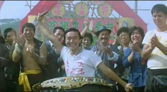 在电影里,饰演他自己,影片开始那段,最初是他在敲鼓,后来毛舜筠跟外国人掰腕子,周星驰敲鼓的时候,他在后面拍手(左边这个)。