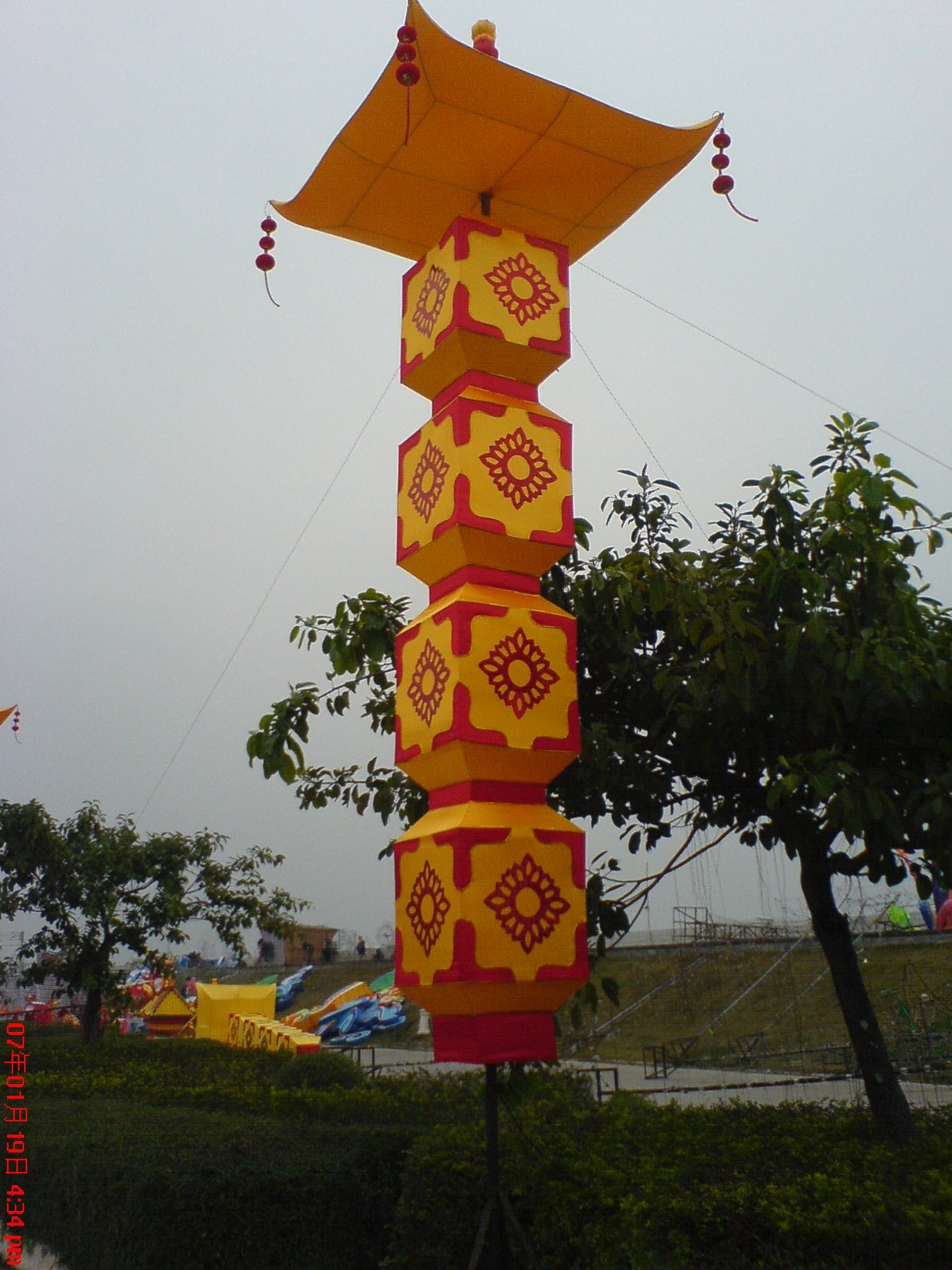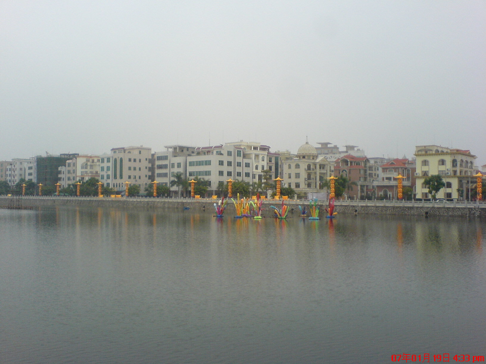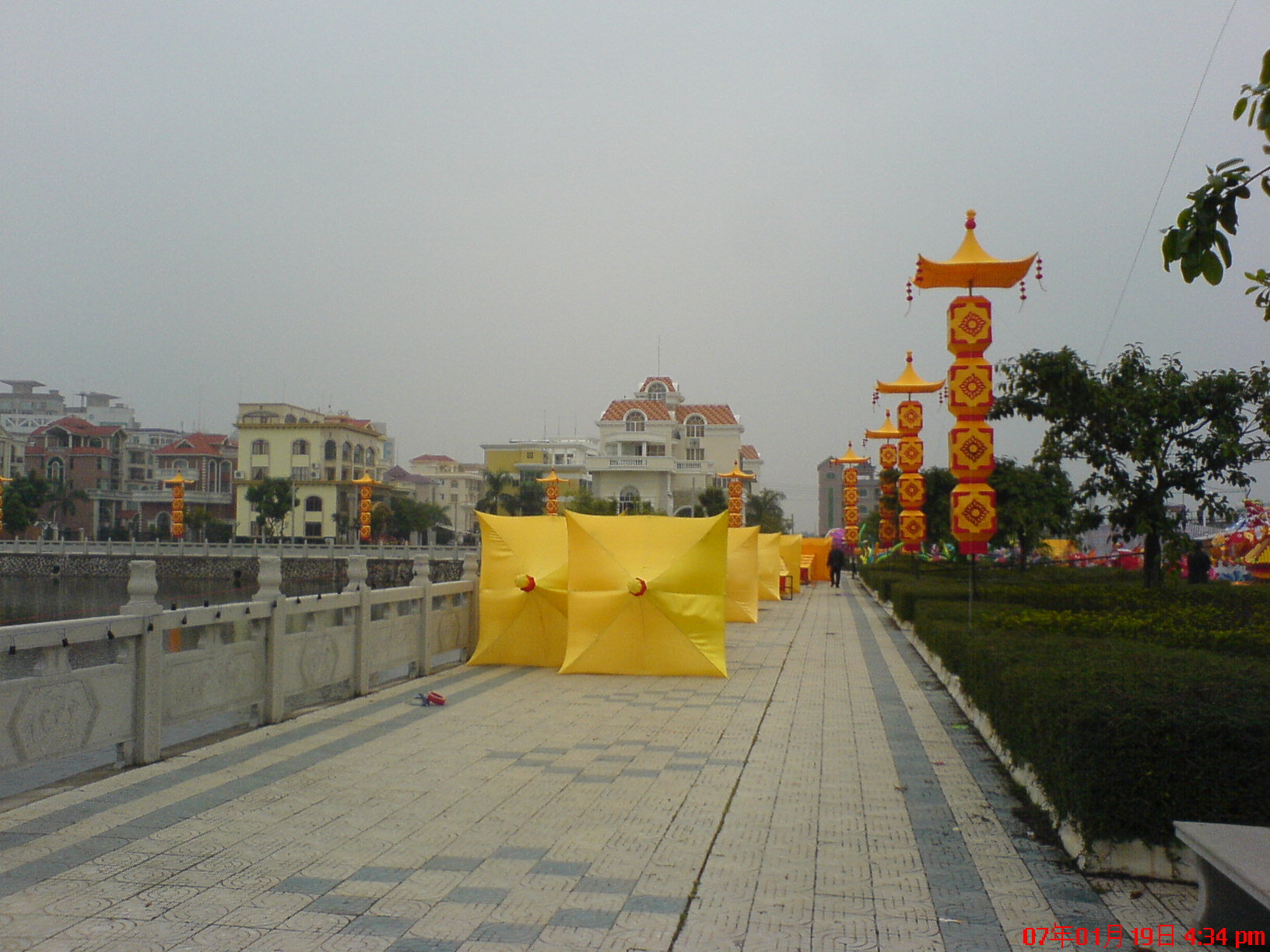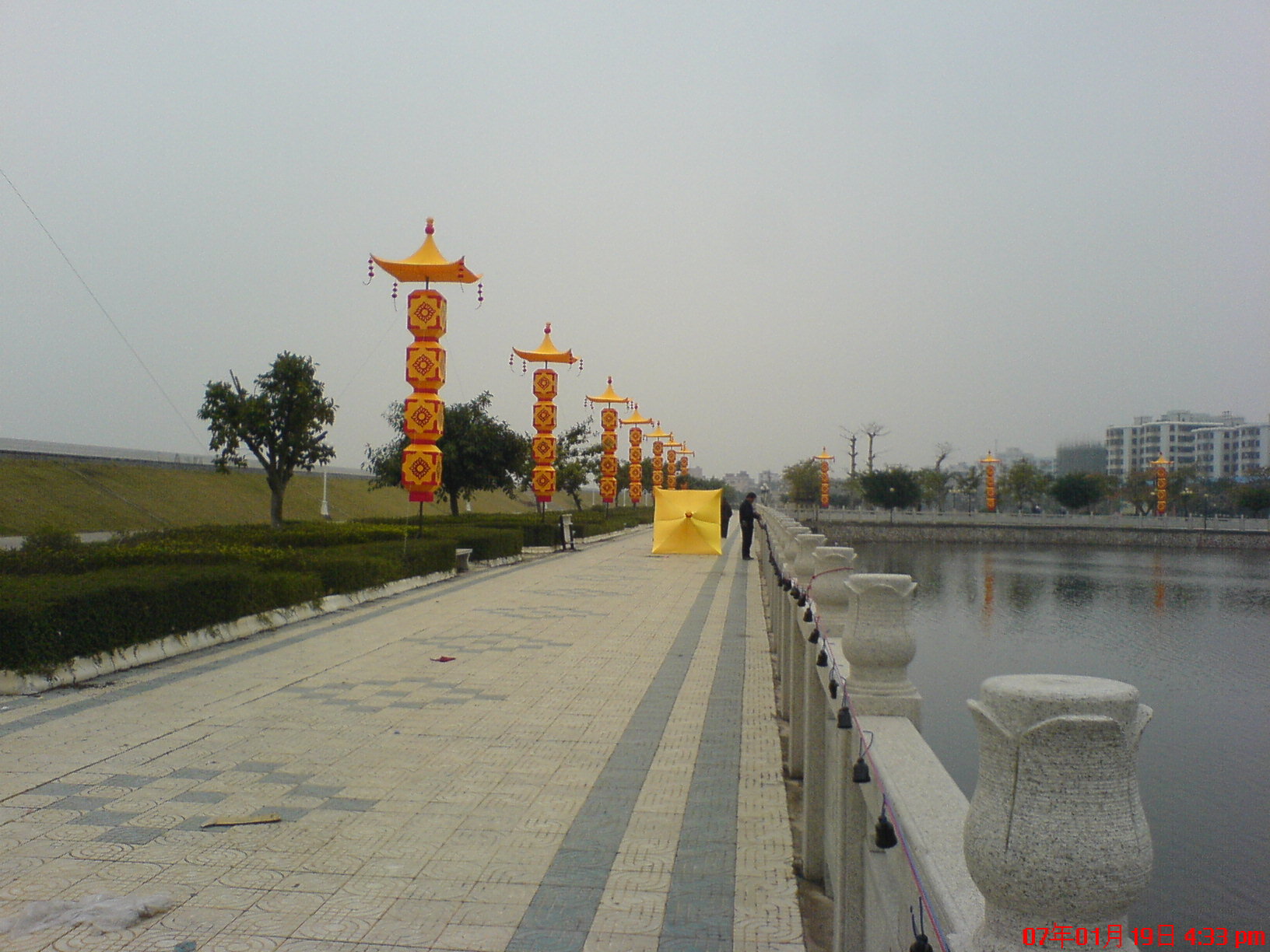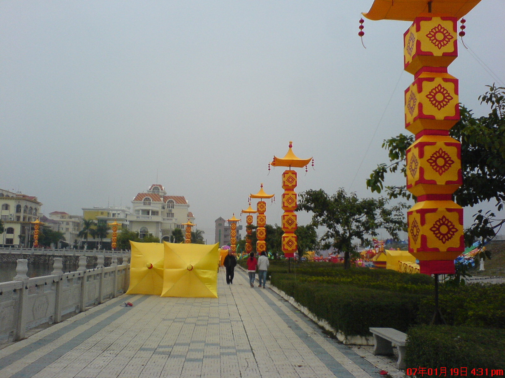 今日路过海边见工人们正忙着造春节花灯.