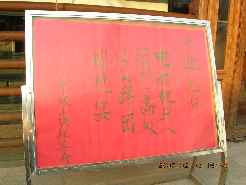 秉承“网聚他乡人,深叙故乡情”的群主题,倡导“积极健康,快乐自由”的主旋律,电白他乡人(深圳)高级QQ群于2007年2月3日星期六在蛇口岭南渔村举行群年度团圆聚会。开了7桌酒席约70余人到场,会场洋溢着浓厚的乡情,现场气氛和谐亲切。聚会圆满成功!!