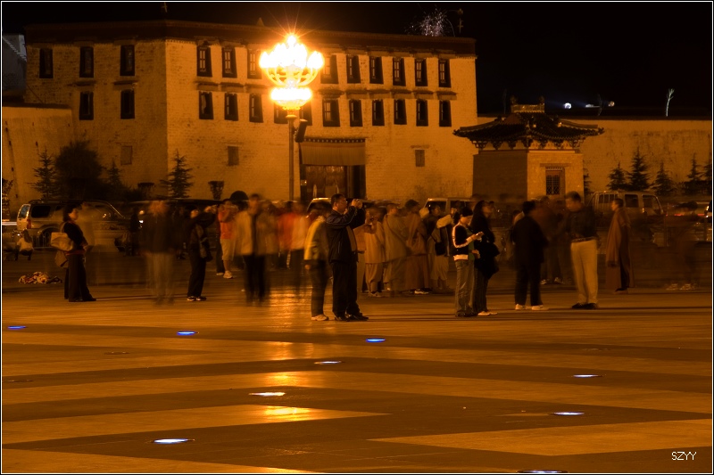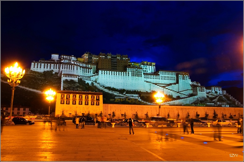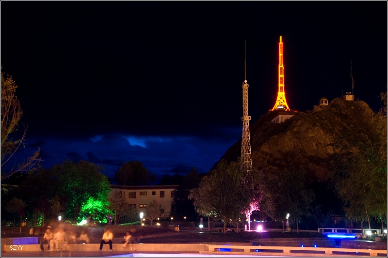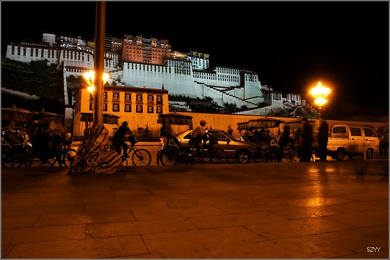 他们几个人都还在上面拍照,我先回到停车场,把车开到离药王山近一点儿的地方,等他们几个下来的时候方便上车。我看到路边有一个冲印店,他们的广告上写着组织去一些线路旅游,包括珠峰大本营,进去跟他们聊了聊,说这个季节看到珠峰的可能性比较小,问了问,我们的三菱欧蓝德能不能去大本营,他们有的说能去,有的说不能去,最后也没一个确定的结论。拍完布宫夜景,回到市政宾馆,已经晚上10点多,今天还是住这里了,就算再腐败一回。跟老曲他们联系上了,明早一起走,去日喀则。