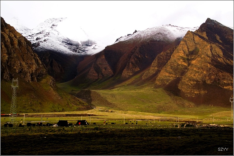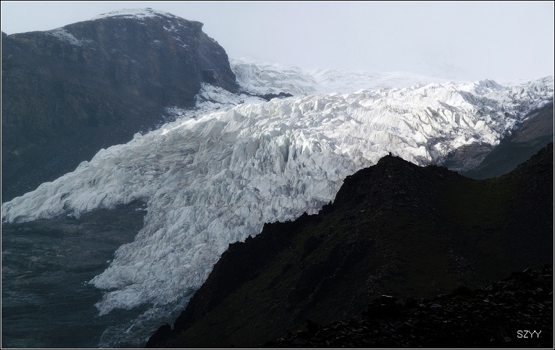 一早天还没亮,本打算去羊湖拍日出,可是因为距离卡惹拉冰川不远,还是想先看看冰川,这一路的冰川情节总是要满足的,在梅里雪山就没去明永冰川,川藏路附近的米堆冰川因为要徒步半个多小时,又下着雨,也没去,这回总要去一个冰川吧。于是7点40,向着羊湖反方向前进。