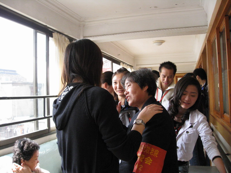 昨天我也忙了一天,其实昨天去的话意义也很大的,周五重阳节也是老人节,但周五很多人没空,所以都选了周六,我也将我昨天在敬老院看到感动的一幕发上来跟大家共享 就是一个女孩,扶一个走路不方便的老奶奶的时候不小心碰到了老奶奶的脚,当时她内疚的哭了 我们也有老去的一天,所以我们现在的行为直接会影响到下一代 跟我们一起到现场的还有我们的法国朋友
