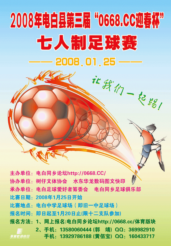 胆队 荣誉会员 荣誉会员 注册 2007-08-28 消息 1,517 反馈评分 0 点数 0 2008-01-10 #59 QUOTE(郭靖 @ 2008年01月10日 Thursday, 01:14 AM) 支持电白足球,电白足球万岁。。。。 [snapback]2069470[/snapback]