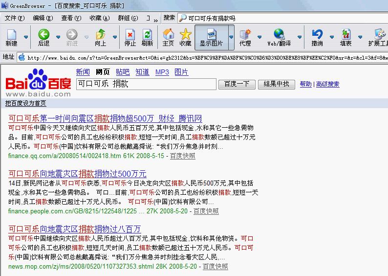 可口可乐有很多广告都在我们中国找人拍,而且在中国找了那么多赞助商在中国宣传…现在四川出了这样的事,那么大的可口可乐公司居然一分钱也没有捐。可口可乐公司只顾自己的利益…哼…那身为中国人的你以后还会喝可口可乐吗?我不喝了!而且我一向都只喝百事可乐!