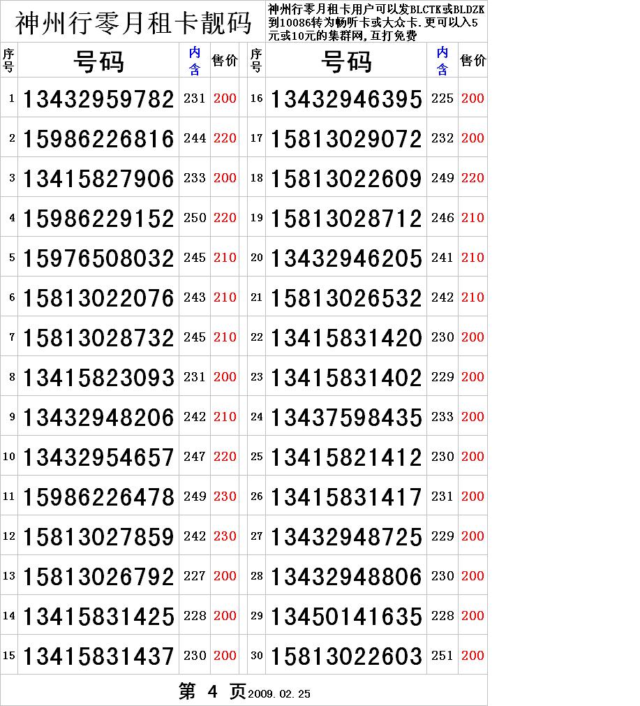 失 失恋男孩 幼儿园 注册 2009-03-17 消息 28 反馈评分 0 点数 0 2009-03-17 #1 免月租的神州行移动已不再推出的套餐,现在本店就收藏了不少的神州和零月租卡,零月租卡的好处在于,一,是不用收月租的,二,可以买比自家的少电话的人,三,可以入集群网,任打任接,也可以入校群网~~~ 附件 1.jpg 275.1 KB · 查看: 449 2.jpg 272 KB · 查看: 475
