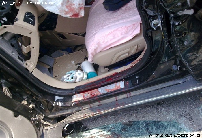 估计550车主没有系安全带,从气囊血迹看来