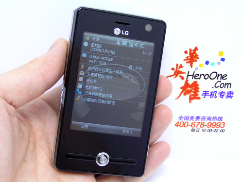 KS20 是 LG 第一部进军国际市场的 Windows Mbile 智慧手机,它的外型延续了 LG「巧克力」时代的纯黑风味,还有一炮而红的精品手机 PRADA Phone 的利落剪裁,机身扁宽,大面积的屏幕几乎就是全机大小。KS20 只有 12.8 mm 薄,重量也只有 92.5 g,将是最轻薄的 WM6 智能手机之一,精品般的设计也和强调功能性的 WM 机种有极大区隔。
