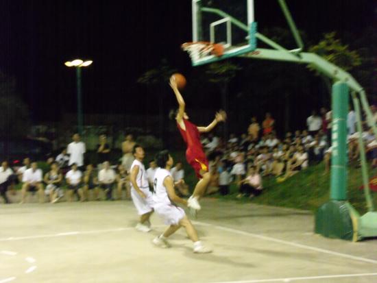 身高只有1.76米的树仔队12号詹江余,在昨晚对霞洞队的比赛中扣篮成功,引起全场喝彩、掌声如雷。