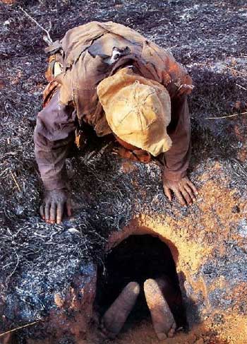 第二步,钻洞,不入蛇穴,焉得大蛇!留下的两只脚让人遐想联翩